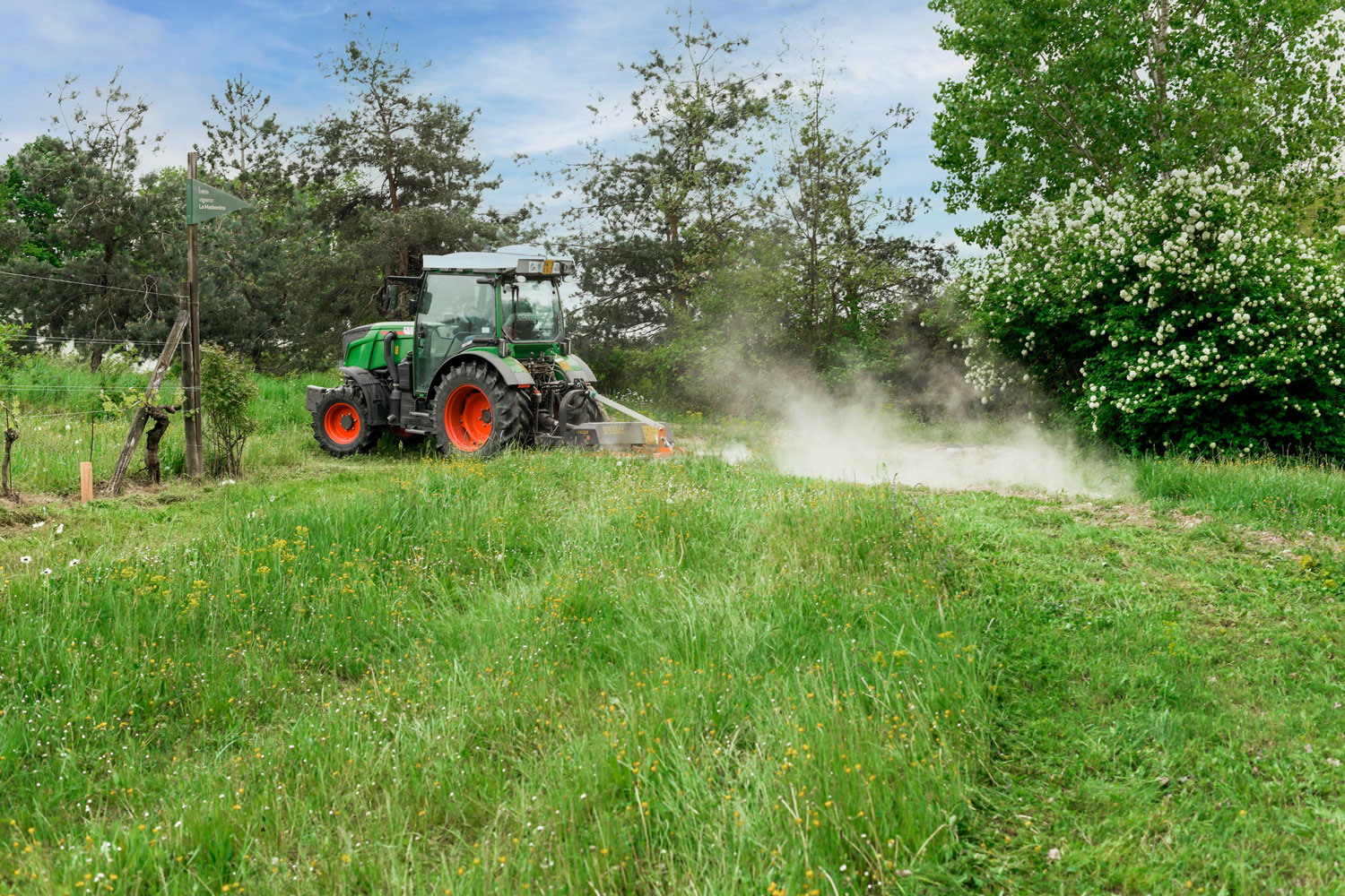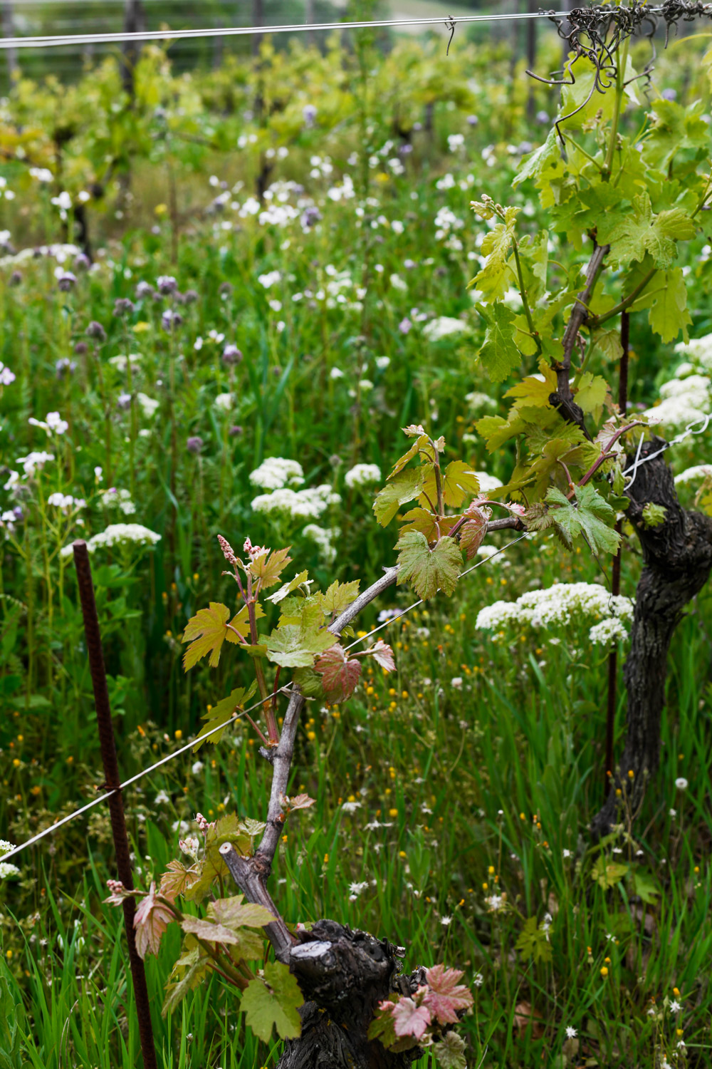 L’agricoltura convenzionale nutre la pianta con cibo solubile che viene assorto passivamente dalle radici: in questo modo le viti perdono la loro identità e la relazione con la terra, uniformando sapore e caratteristiche dei loro frutti. Il metodo biodinamico che seguiamo a La Raia, invece, punta a rafforzare la pianta in ogni sua componente, fin dalle radici, affinché mantenga una condizione ottimale di equilibrio con la natura e il clima in cui vive. Per questo a La Raia tutti i vigneti sono inerbiti a filari alternati con specie spontanee e con il sovescio autunnale: si tratta infatti di una selezione di leguminose (fave, favino, piselli, veccia), ma anche cereali (avena, orzo) che, grazie alle proprietà azoto-fissatrici e all’azione radicale, hanno il potere di migliorare la fertilità e la struttura del terreno. Le erbe spontanee nei filari aiutano inoltre ad aumentare la biodiversità del sottosuolo agendo sulla formazione dell’humus e rendendolo più stabile. Queste piante saranno poi sfalciate a beneficio ulteriore del terreno.