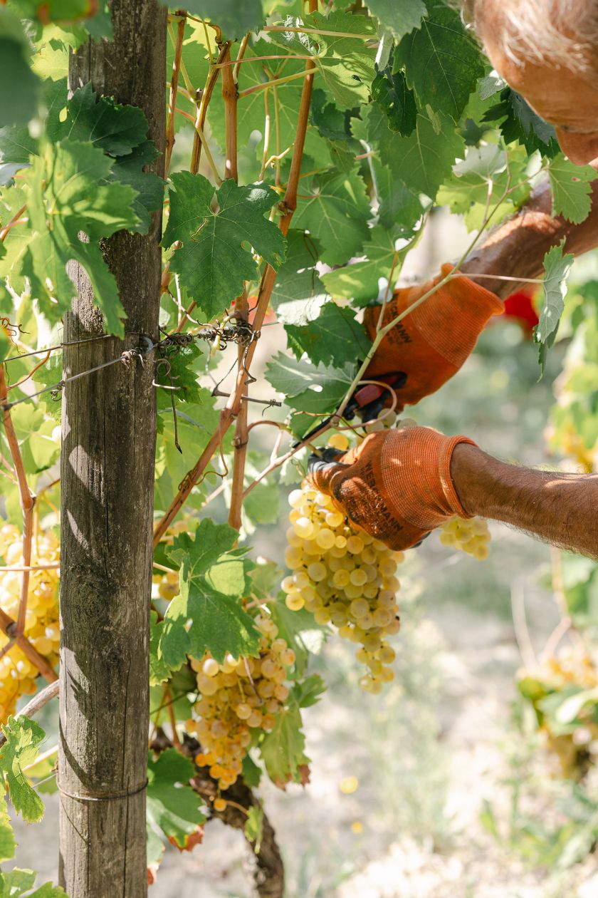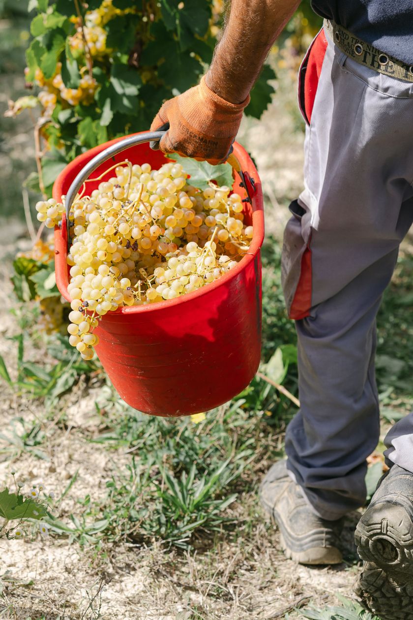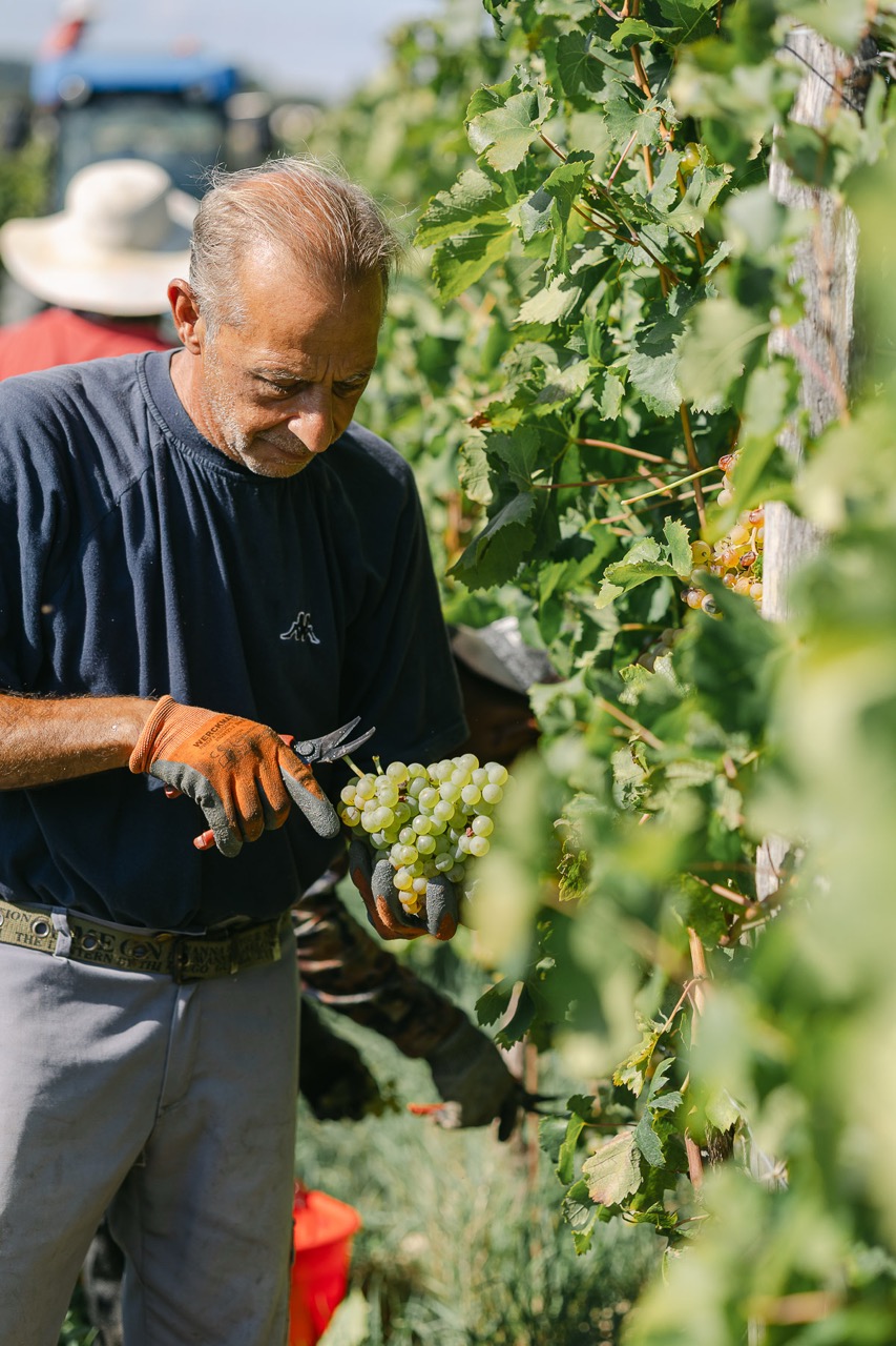 La coltivazione segue il metodo biodinamico che mira a rafforzare la vitalità della pianta e la sua capacità di reagire nel migliore dei modi alle modifiche dell’ambiente in cui vive. La forma di allevamento è il Guyot: la vite ha un’altezza del tronco di circa 50-90 cm, mentre il capo a frutto (tralcio fruttifero rinnovato ogni anno) viene legato al filo di sostegno orizzontalmente rispetto al terreno: si garantisce così una ridotta espansione e una miglior gestione delle foglie e dell’esposizione dei grappoli.