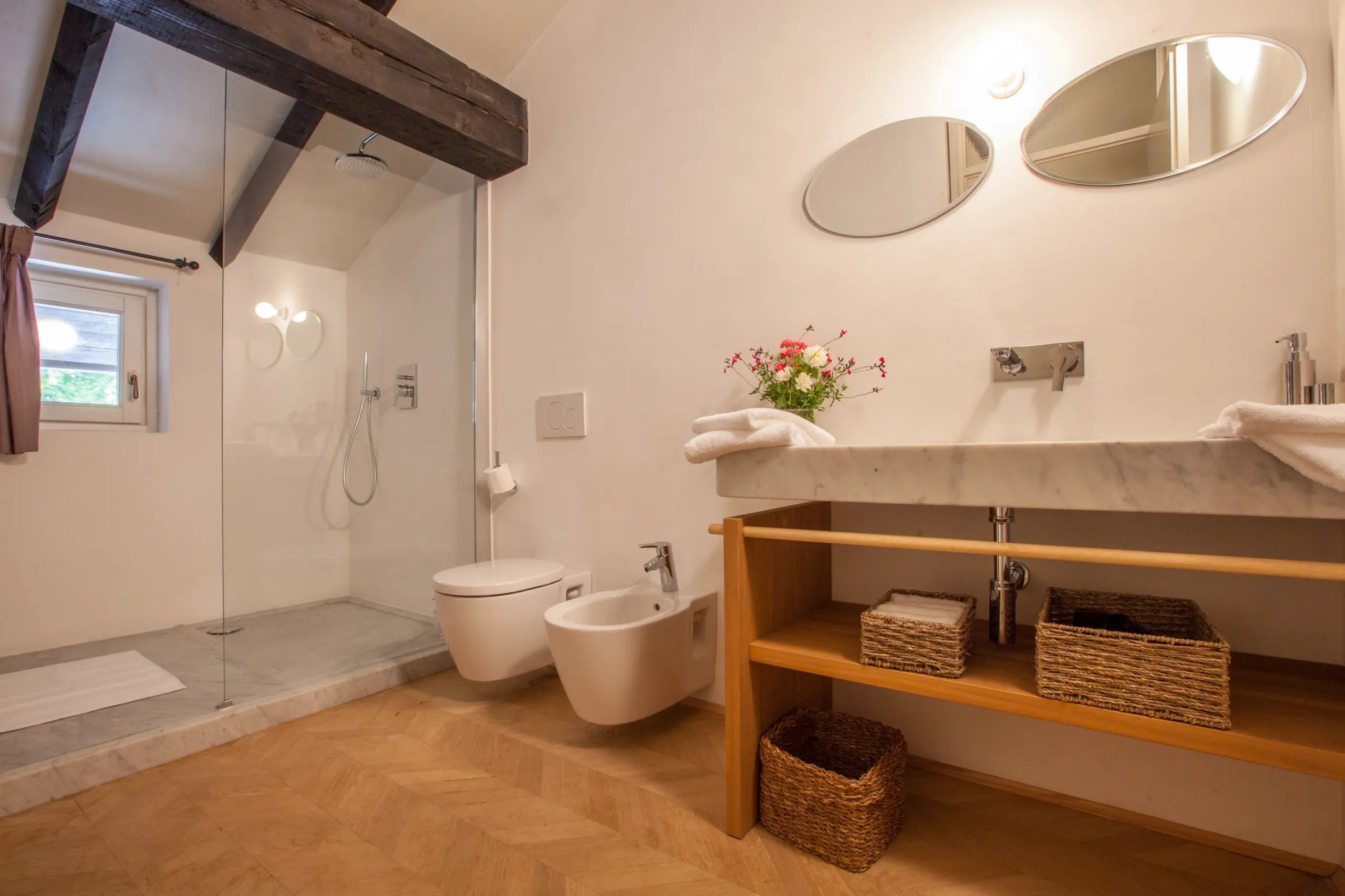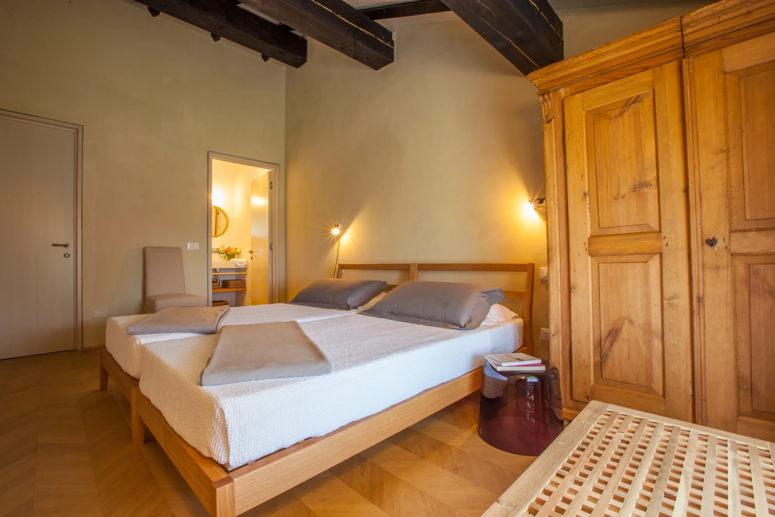 2 double bedrooms (1 double bed and two single beds that can be converted into a double), overlooking Il Borgo’s inner courtyard