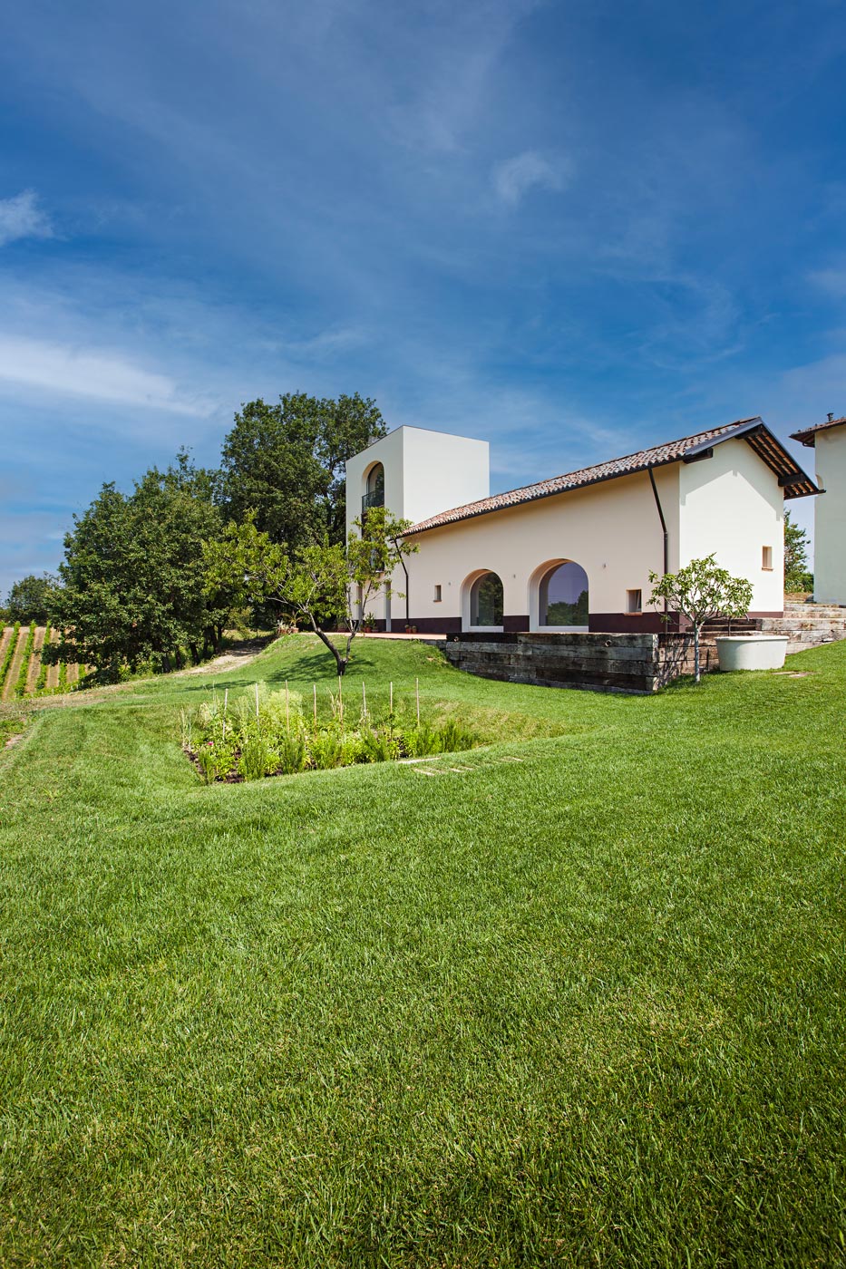 Borgo Merlassino is an ancient farming hamlet on the northern edge of La Raia biodynamic estate. The Borgo occupies one of Gavi’s most beautiful positions, overlooking an unspoilt valley, amidst ancient woods and a small, easily accessible lake. The buildings that compose it, once devoted to different agricultural activities, are organised around a large circular courtyard; all around, the woods and the Cortese vineyards.