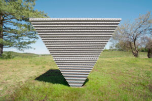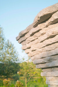 The site specific work is a a sculpture with an overturned pyramid form in Luserna stone, a local gray granite, with over 2300 holes of various diameters cut into the stone blocks.