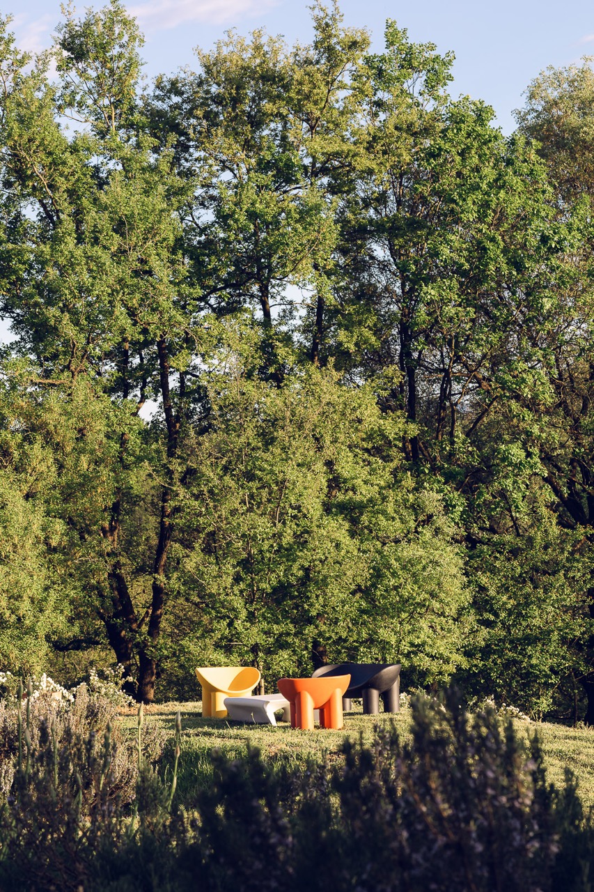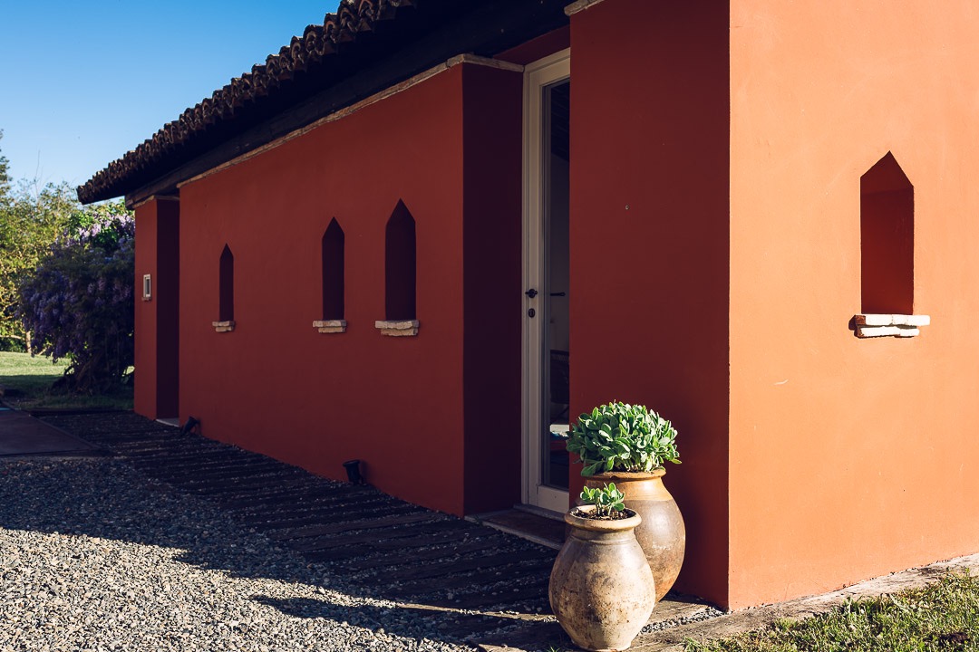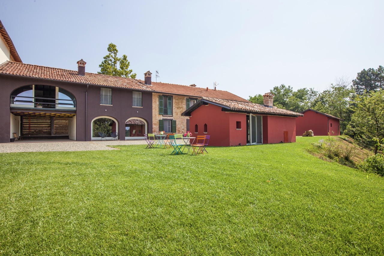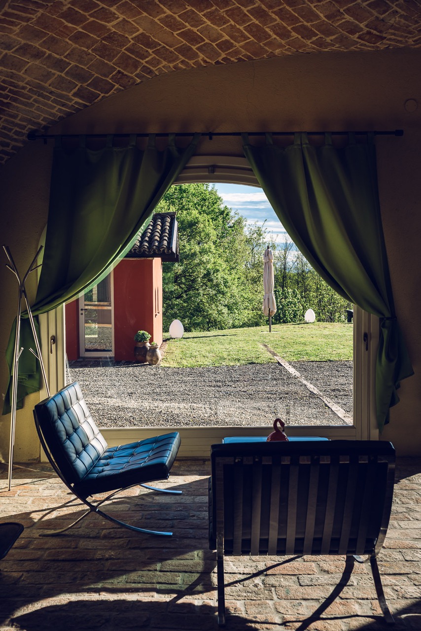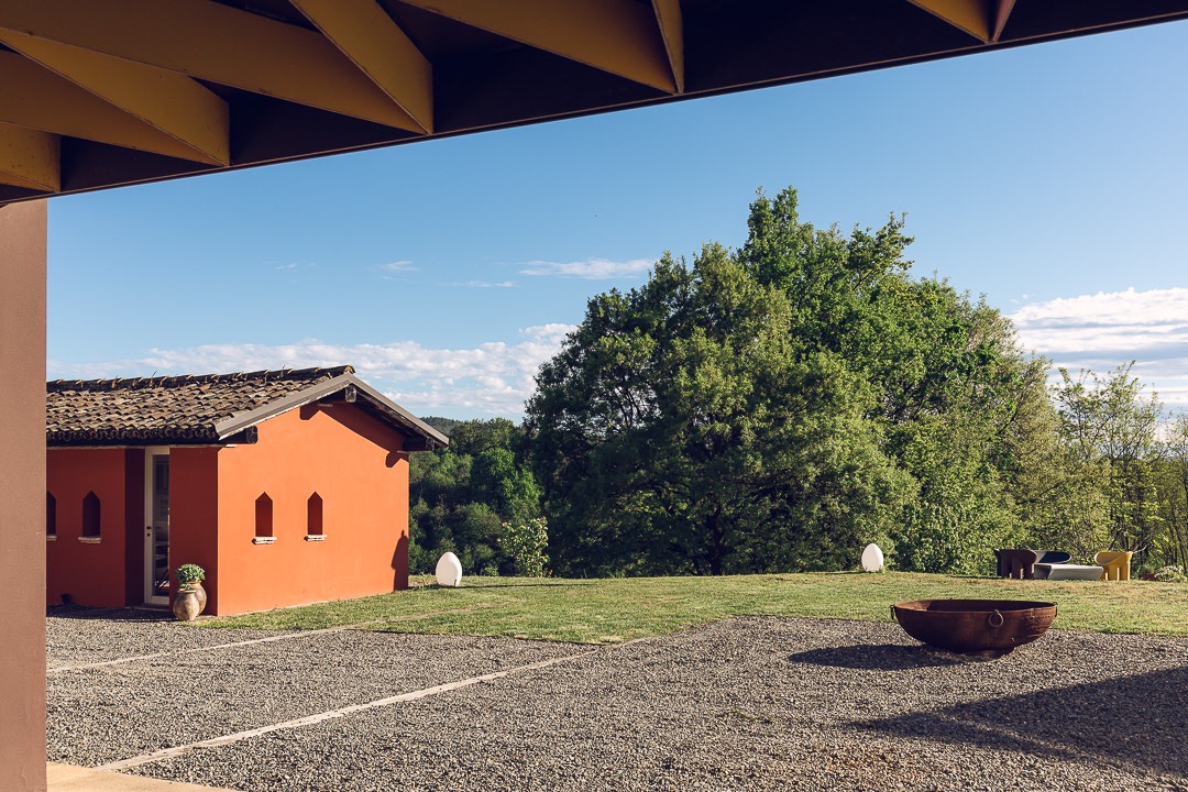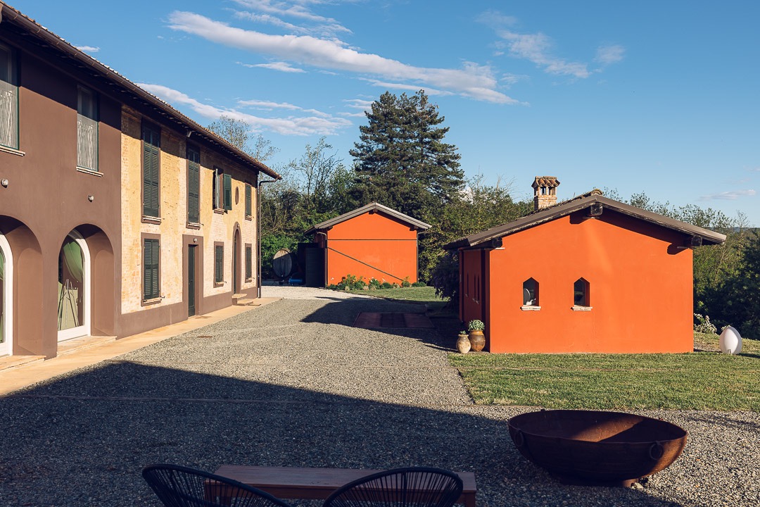The old farmhouse, the barn, the patio and La Villa are arranged around a large circular courtyard, all surrounded by Cortese vineyards.